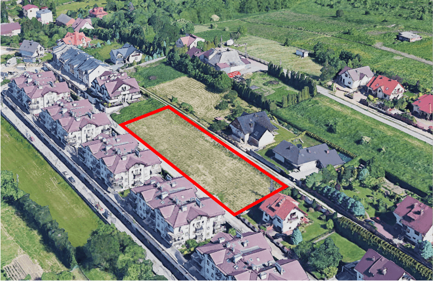 Teren inwestycyjny przeznaczony do zabudowy jednorodzinnej, bliźniaczej lub szeregowej zlokalizowany jest przy ul. Różanej na terenie miasta Wieliczka.
